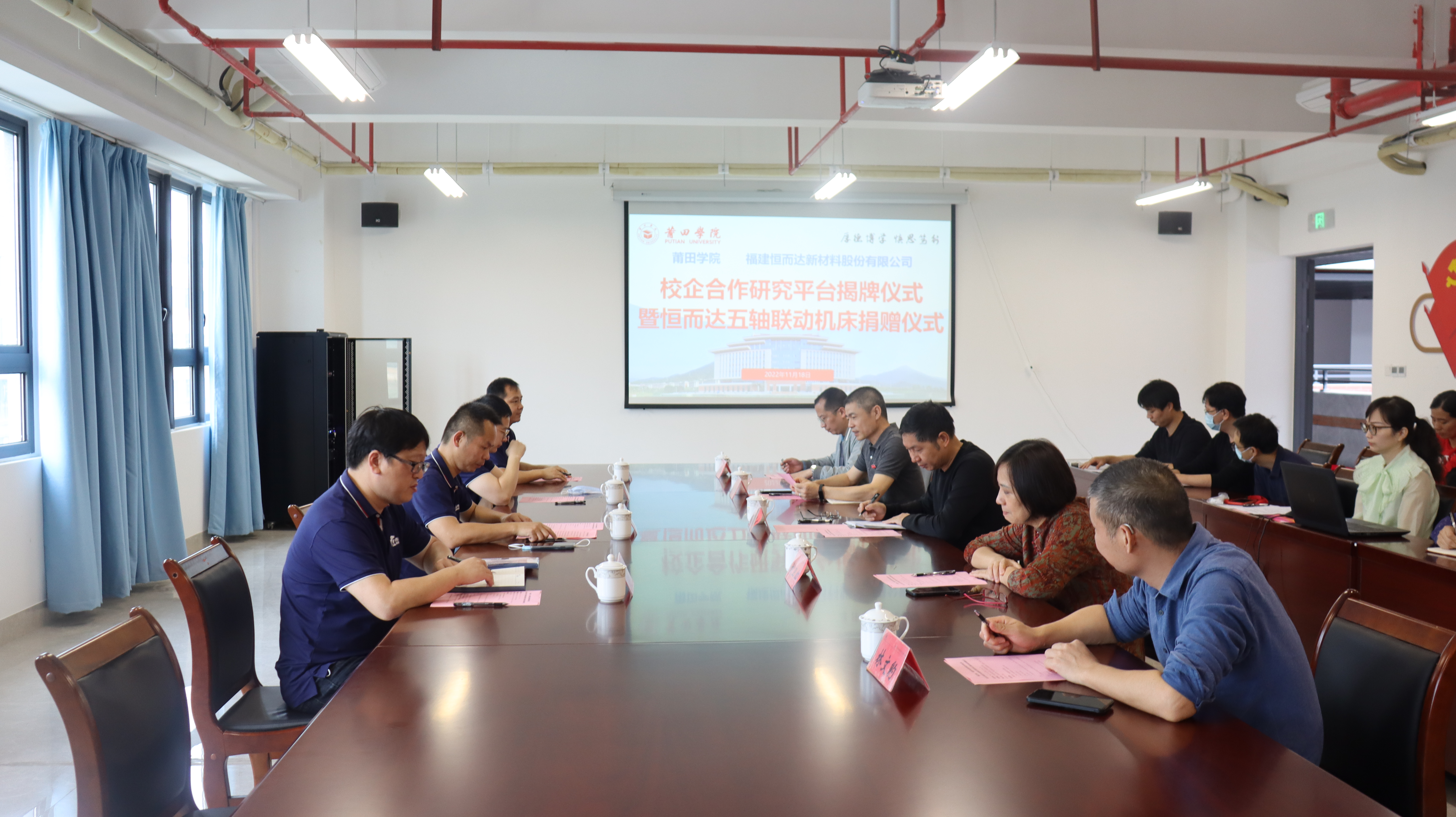 隨后,沈總代表恒而達(dá)同莆田學(xué)院機(jī)電與信息工程學(xué)院簽訂了戰(zhàn)略合作協(xié)議,并舉行“研究生聯(lián)合培養(yǎng)基地”“大學(xué)生校外實(shí)習(xí)基地”授匾儀式、數(shù)字化智能加工校企合作研究平臺(tái)揭匾儀式及恒而達(dá)CNC新型五軸聯(lián)動(dòng)機(jī)床捐贈(zèng)儀式。