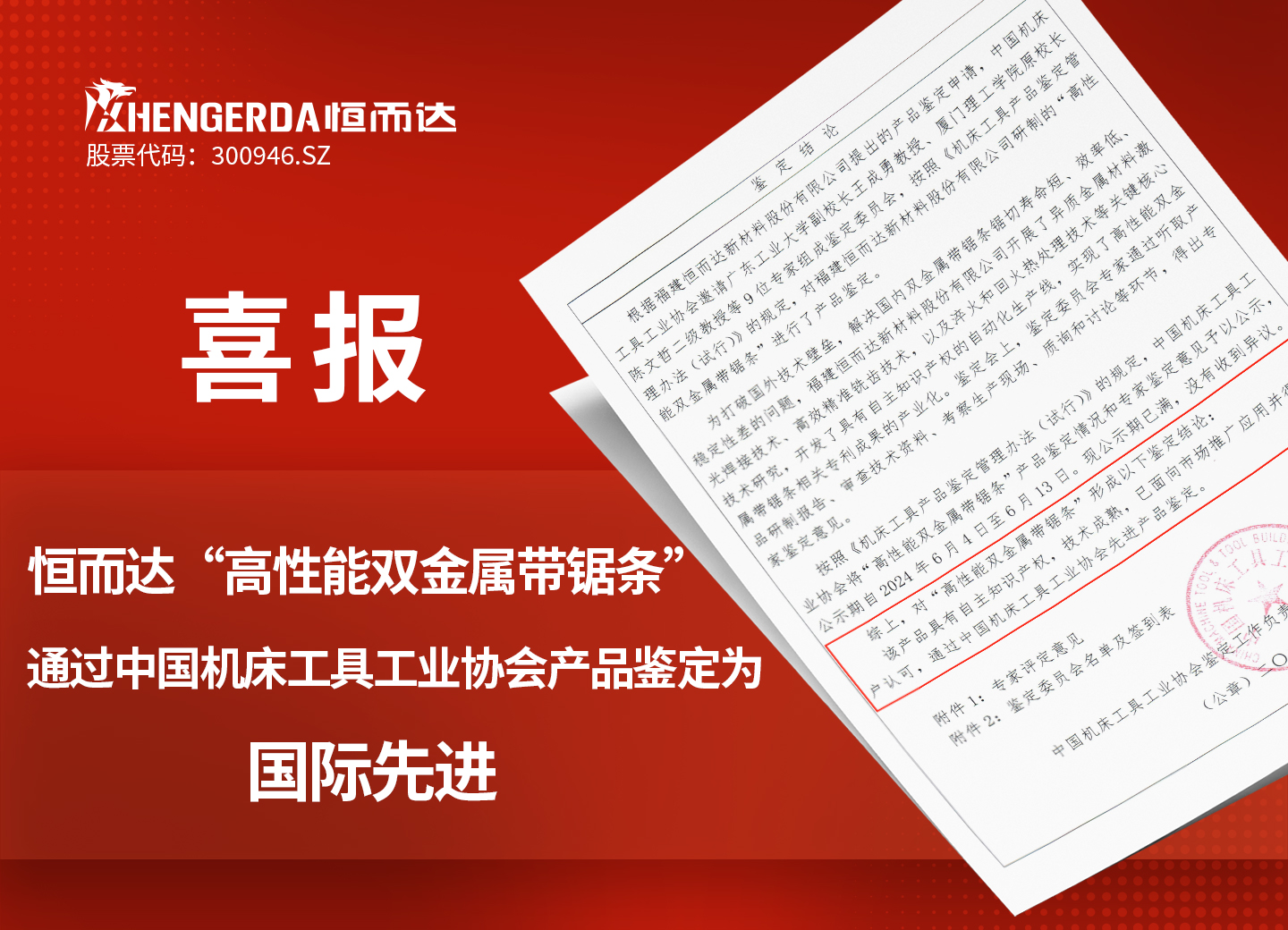 喜訊丨恒而達(dá)“高性能雙金屬帶鋸條”產(chǎn)品通過(guò)中國(guó)機(jī)床工具工業(yè)協(xié)會(huì)產(chǎn)品鑒定