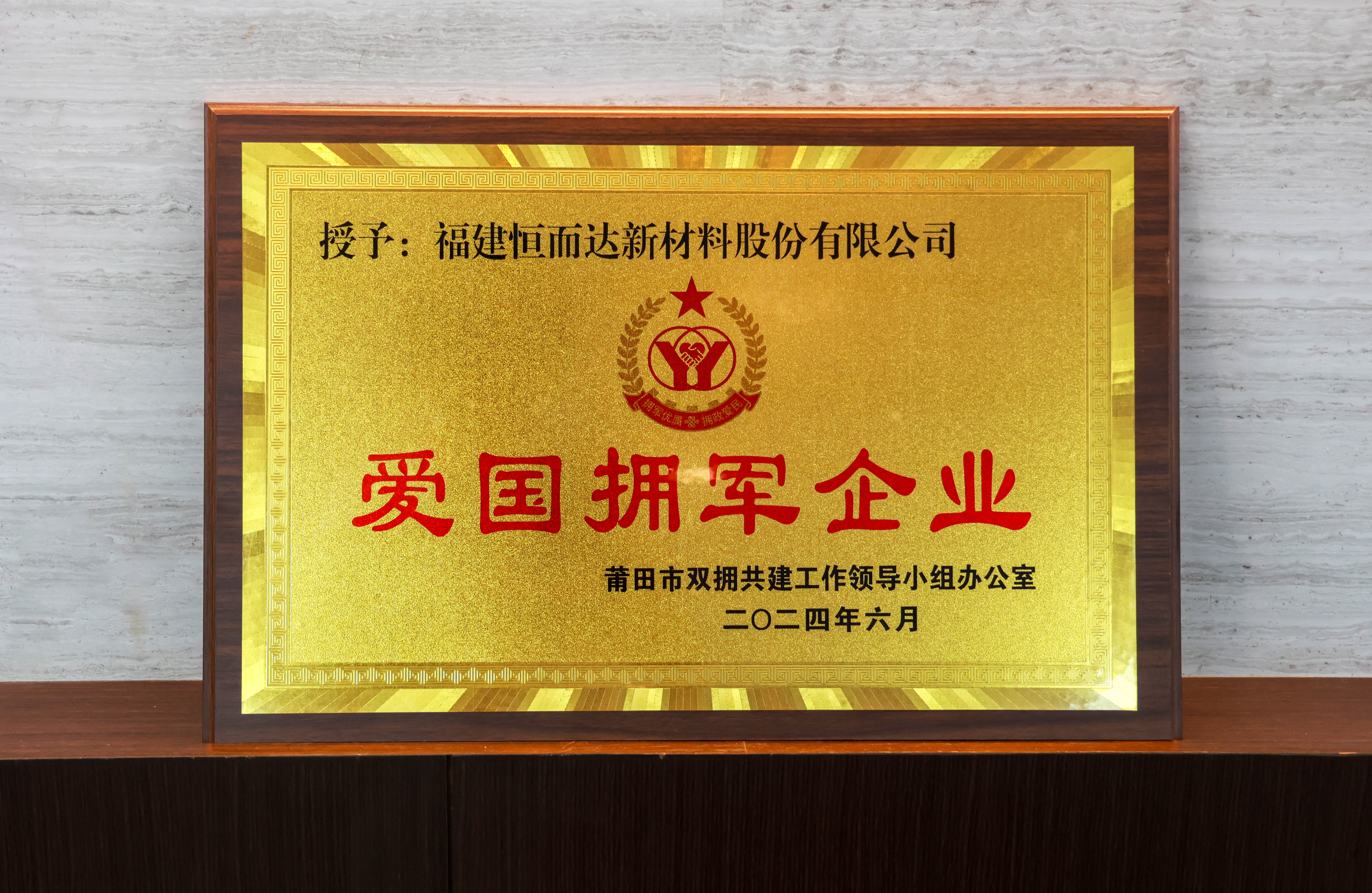 2024年6月21日,莆田市雙擁共建工作領(lǐng)導(dǎo)小組辦公室授予恒而達(dá)“愛國擁軍企業(yè)”牌匾,表彰其愛國擁軍的企業(yè)擔(dān)當(dāng)和投身雙擁工作的政治熱情。
