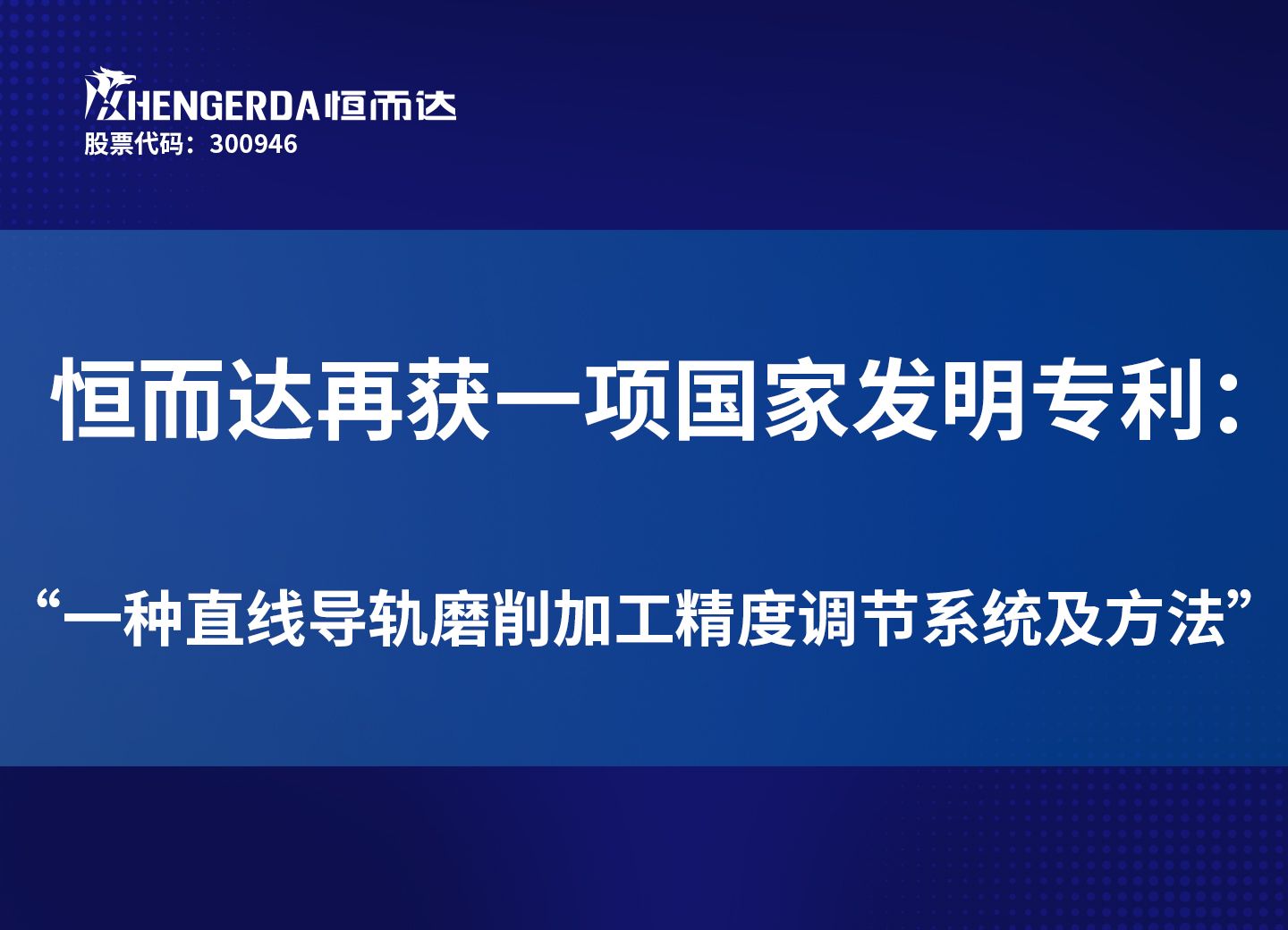 創(chuàng)新突破!恒而達榮獲“一種直線導(dǎo)軌磨削加工精度調(diào)節(jié)系統(tǒng)及方法”國家發(fā)明專利授權(quán)