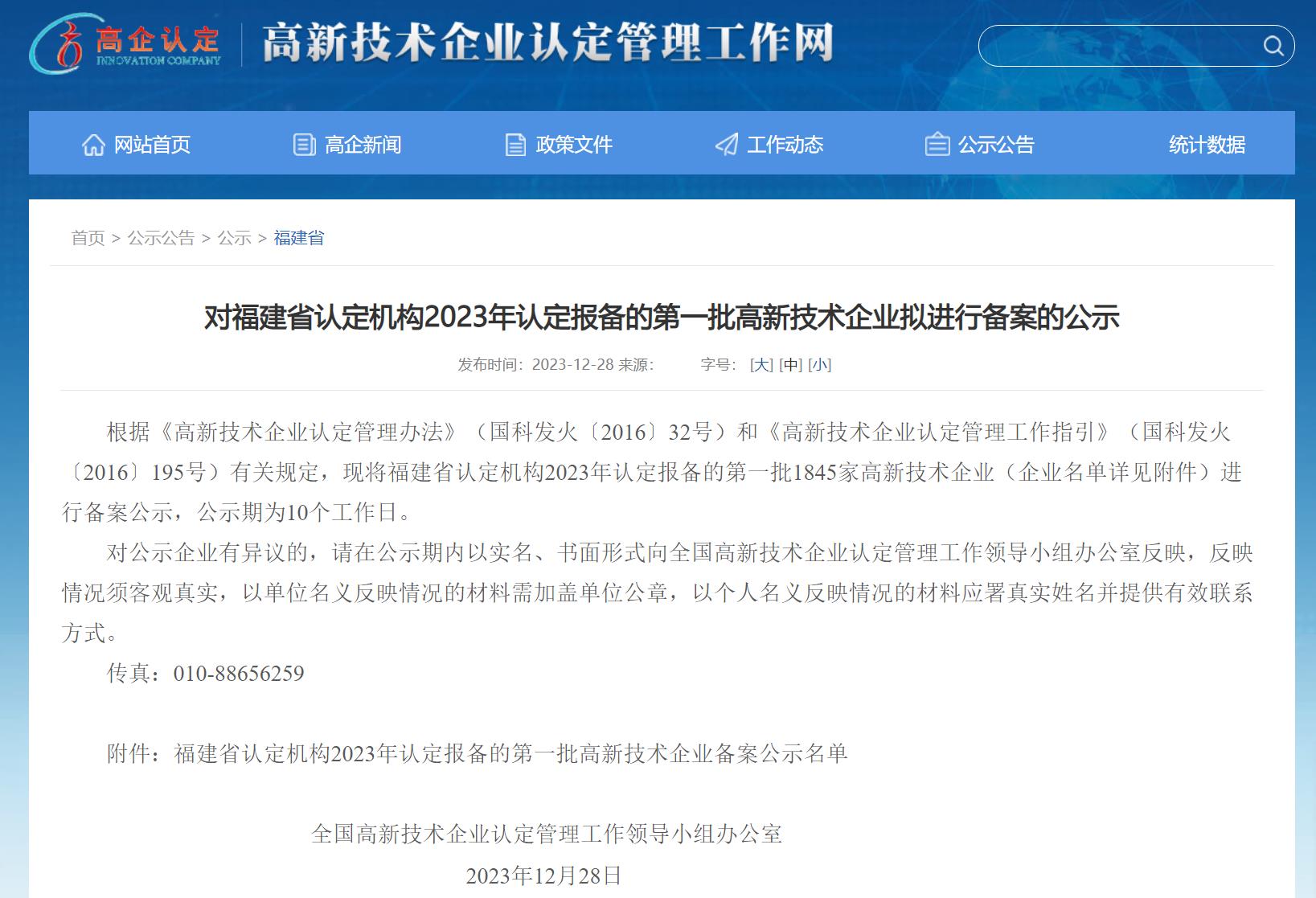 12月28日,高新技術(shù)企業(yè)認(rèn)定管理工作網(wǎng)發(fā)布“福建省2023年第一批高新技術(shù)企業(yè)”結(jié)果公示,經(jīng)過(guò)嚴(yán)格的資格審查程序,恒而達(dá)再次順利通過(guò)國(guó)家高新技術(shù)企業(yè)認(rèn)定!