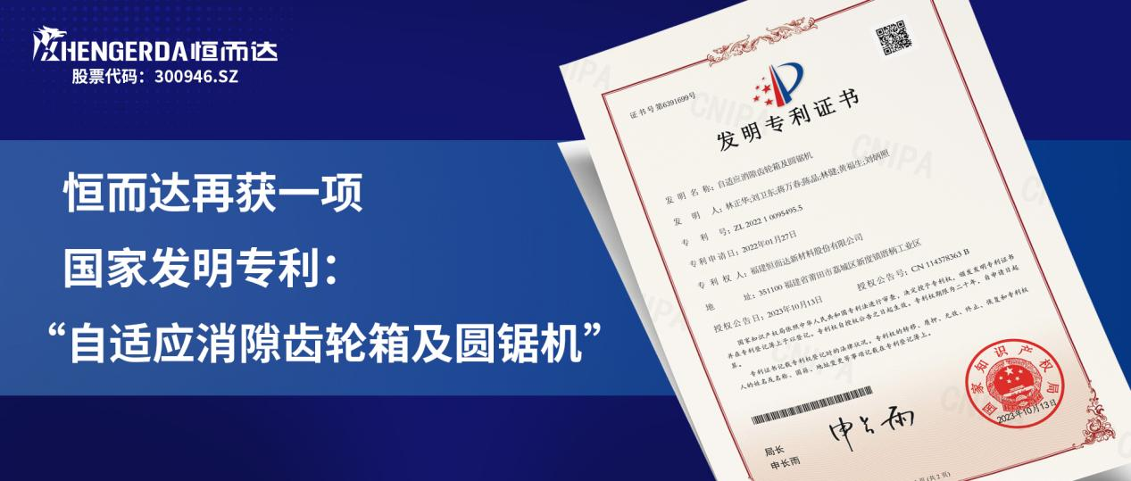 喜訊丨恒而達自適應(yīng)消隙齒輪箱及圓鋸機再獲一項國家發(fā)明專利!