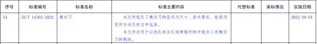 近日,由我司作為牽頭單位起草制定的模切工具首個(gè)行業(yè)標(biāo)準(zhǔn)——《模切刀》(編號(hào):JB/T 14364-2022)行業(yè)標(biāo)準(zhǔn)正式發(fā)布,并于2022年10月1日實(shí)施。