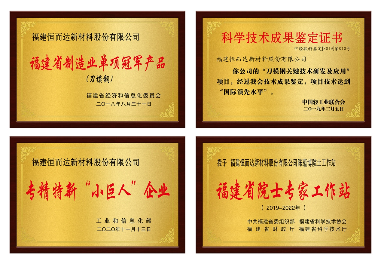 2019年,恒而達(dá)“刀模鋼關(guān)鍵技術(shù)研發(fā)與應(yīng)用”通過中國輕工聯(lián)合會技術(shù)鑒定,技術(shù)達(dá)到國際領(lǐng)先水平;