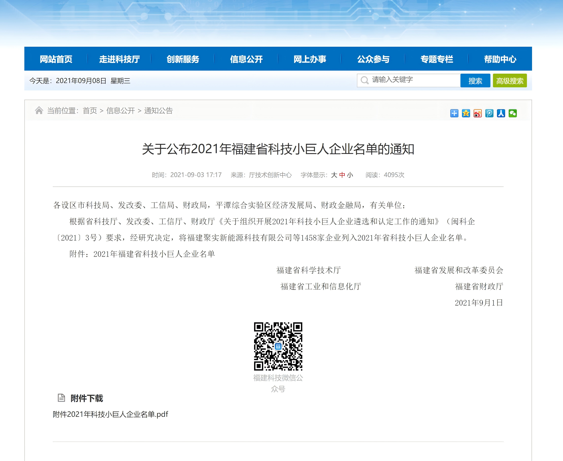 根據(jù)省科技廳、發(fā)改委、工信廳、財(cái)政廳《關(guān)于組織開展2021年科技小巨人企業(yè)遴選和認(rèn)定工作的通知》(閩科企〔2021〕3號(hào))要求,經(jīng)研究決定,將恒而達(dá)列入“2021年福建省科技小巨人企業(yè)”名單。