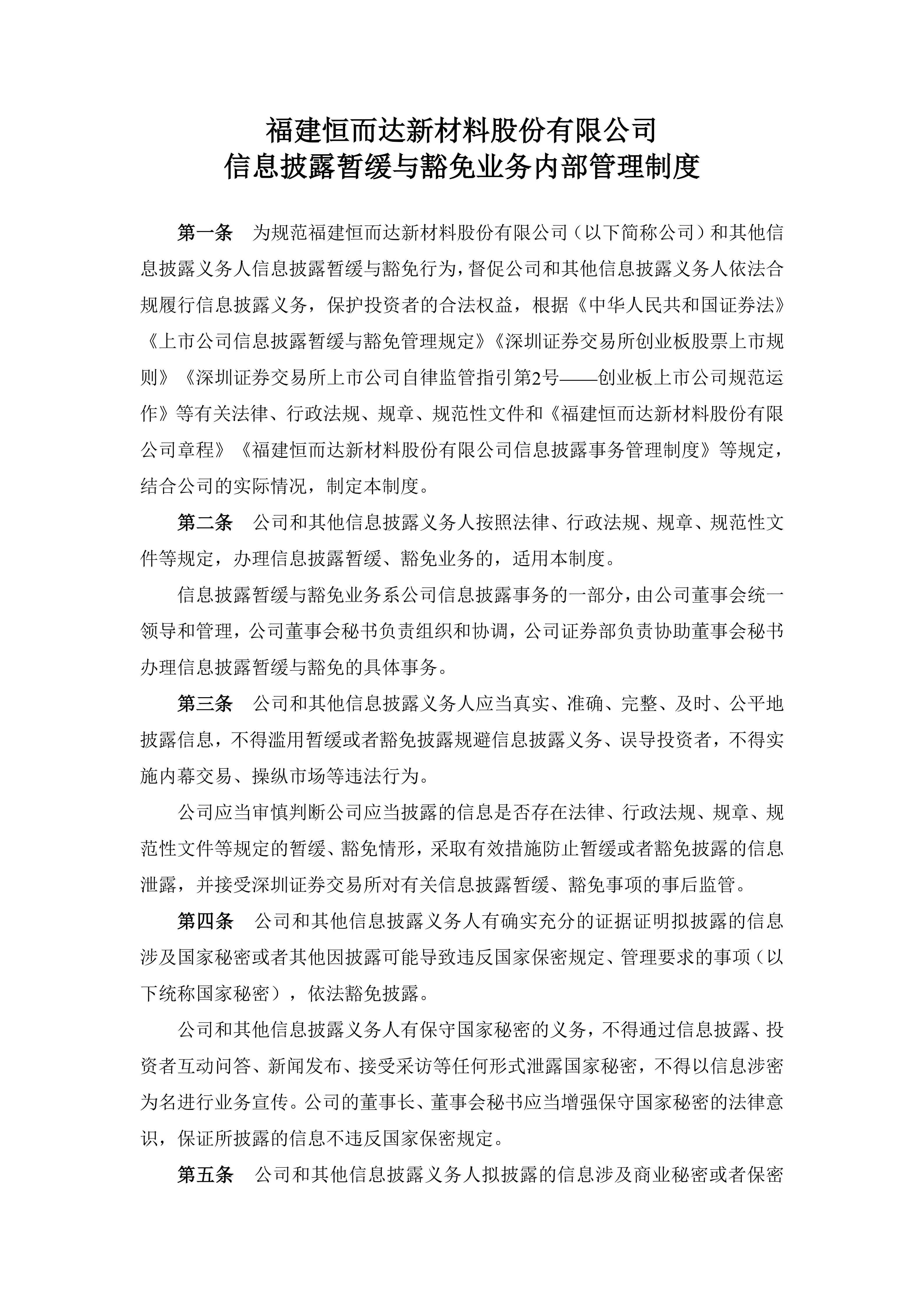 信息披露暫緩與豁免業(yè)務(wù)內(nèi)部管理制度